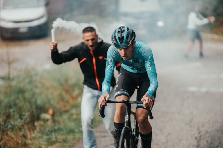 Si è svolta sabato sotto ad una pioggia battente la prima edizione della Kaiser mit Friends, la cronoscalata che ha messo in palio il titolo di scalatore dell’anno dello Swatt Club. Nove terribili km al 10.3% di media, con la partenza controllata dal Larchenwirt Dolomites fino al via ufficiale da Campitello, l’arrivo ai 1876 metri del Rifugio De Doo, la terrazza della Val Comelico. La posta il palio? La possibilità di diventare professionisti per un giorno nel 2026, con la maglia del Team Èlite dello Swatt Club.